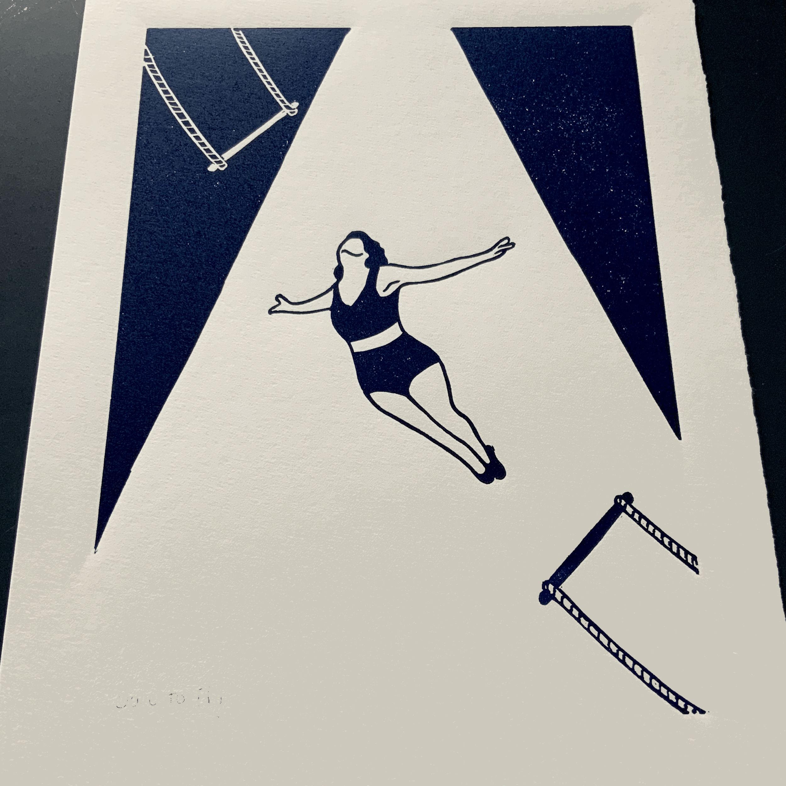 “Dare to Fly” is an original linocut print. Each one is individually inked and printed by hand using the highest quality fade resistant navy ink on archival quality Zerkall paper. This means that your print will resist fading, yellowing and deterioration.